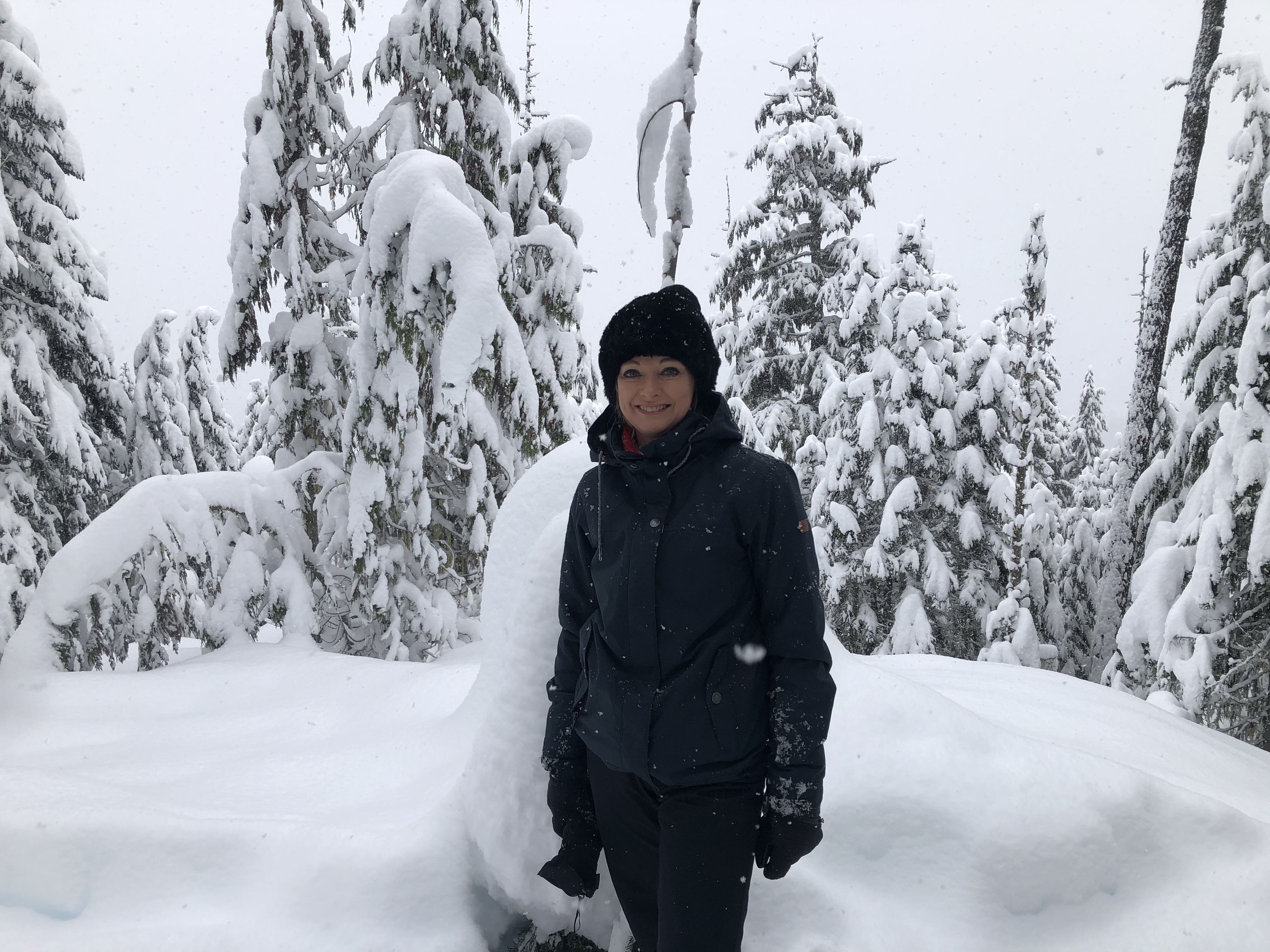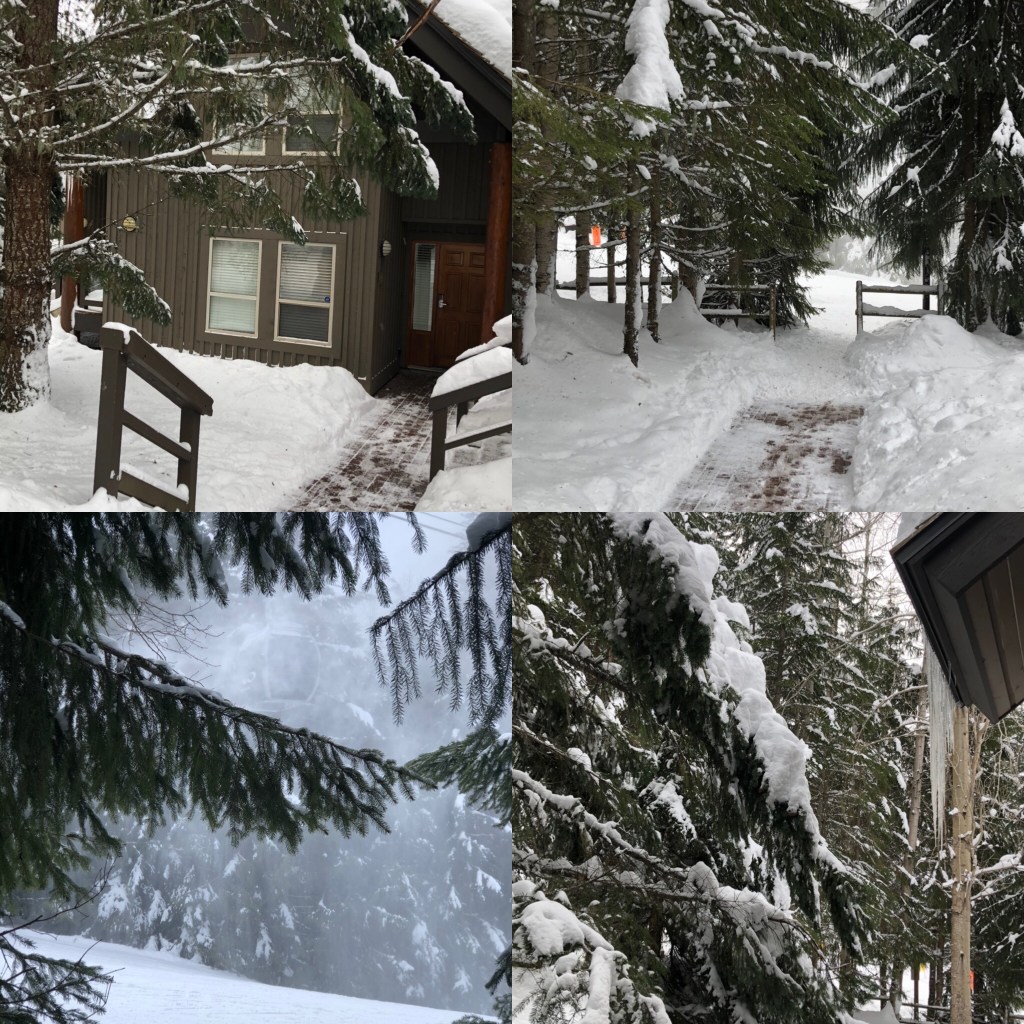 This morning I had booked a snowshoeing activity – we went up in the Whistler gondola and then to a trail – it was actually a mountain biking trail – just beautiful walking through the trees! Surprisingly easy to walk – the shoes have crampons underneath to grip.