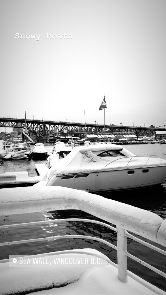 Upon arriving at the Hyatt in Vancouver, we dropped bags and went to a restaurant called Cactus Club near the water which was randomly recommended by someone we chatted to in one of the ski huts at Whistler! it was pretty cold – Vancouver had had a lot of snow overnight.