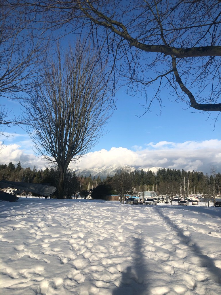 From Granville Island we walked to the Museum of Vancouver, through the snowy fields.